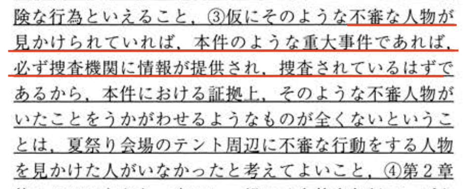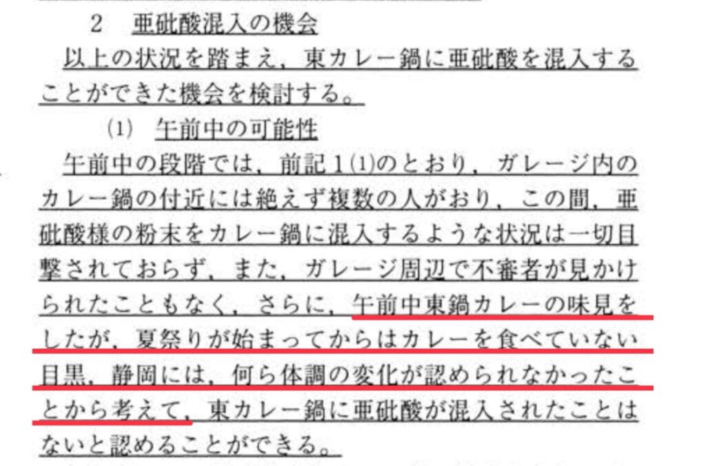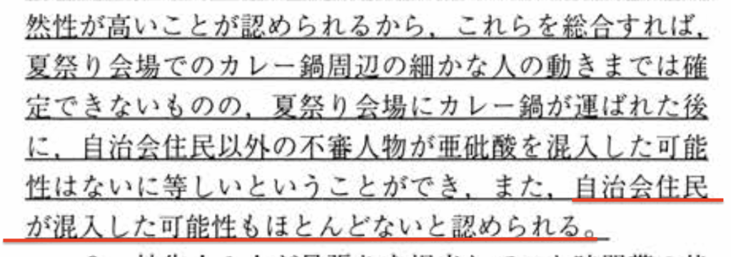 ていうか、裁判官自身が、夏祭り会場で混入された可能性も〝ないことはない〟と書いているんや。