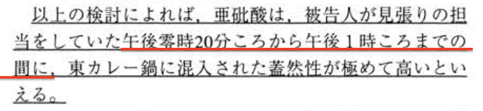 - 午前中……「亜批酸が混入されたことはないと認めることができる」