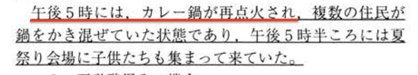 だからカレーを夏祭り会場で食べずに家に持ち帰った人も多かったわけだし。それが被害を拡大させる一因になってしまったのだけど。
