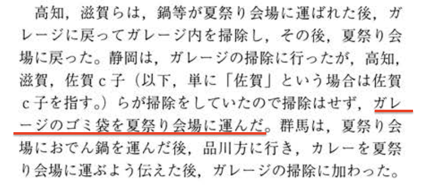 それもあるが、こんな重要な話をなんの検討も加えずに挿入するのは違和感があるで。通常その章のまとめに書くのは、章で膨大な文量をさいて検討したことをコンパクトにまとめた内容や。でもこのゴミ袋の移動は、第三章ではここにひとこと書いてあるだけや。