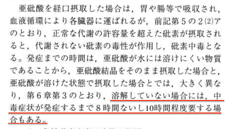 なるほど。夜のカレーを食べてヒ素中毒になった人だと、昼のカレーと夜のカレーのどっちが原因か分からないものね。