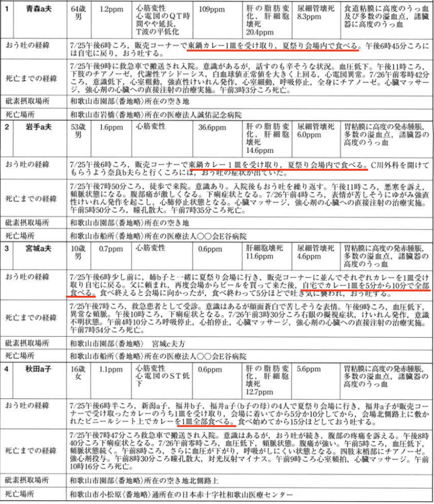 一人ひとり、どれぐらい食べてどういう症状になったかまで書いてあるわ。