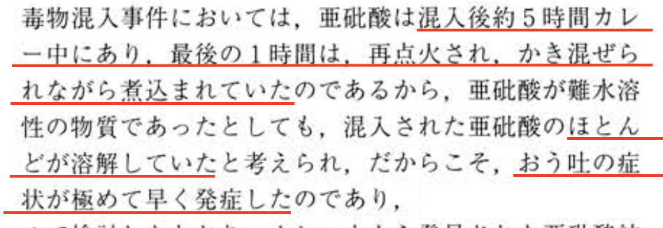 しかし判決文は、カレーは1時間ほどかき混ぜられてまんべんなく行き渡っていたと書いているんや。