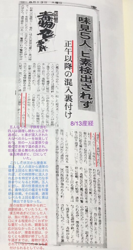8/2……あっ、科警研がヒ素を検出した日だわ。記事はそれより前ということね。