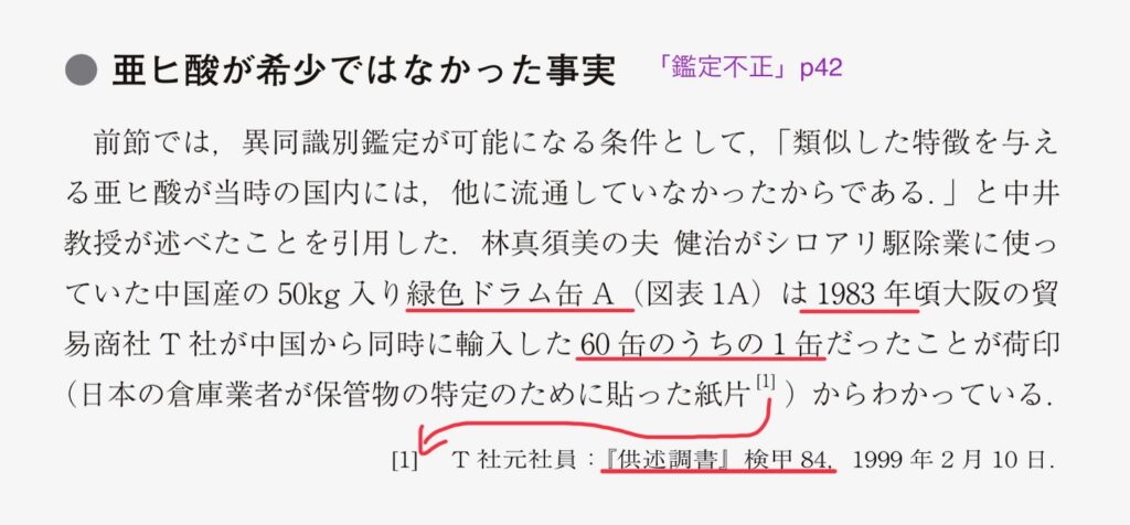 確定一審の判決に、林家のヒ素と同じ時期に同じ中国で作られたヒ素がいっさい登場しなかったことを考えれば、同じ組成である可能性が高いヒ素がこれだけ輸入されていた事実はめっちゃ重いはずやのにな。