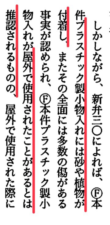 しかもこのプラ容器、屋外で使われていたものだったと裁判所も認めたのよね?