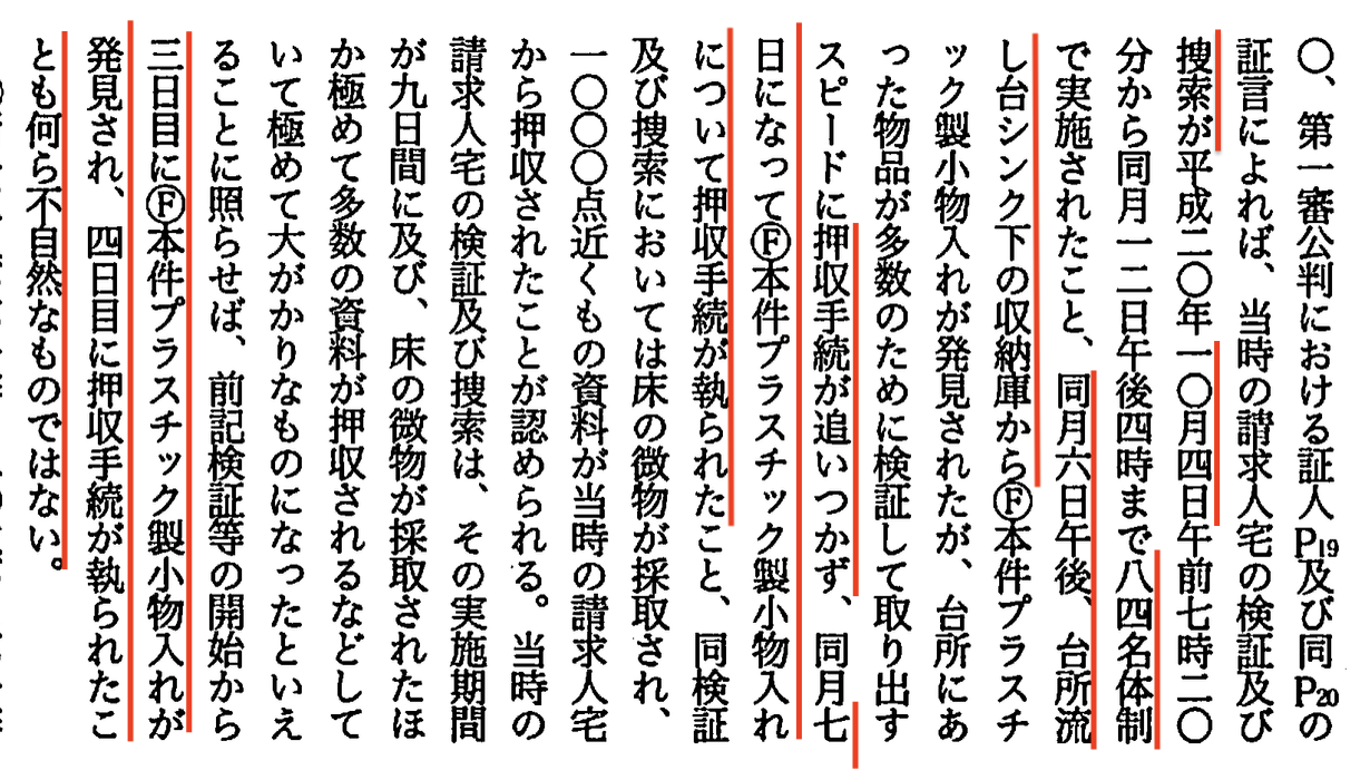 そこなんや。本来なら証拠品は要所要所で写真を撮ってあるはずなのに存在しないことを弁護団も追及して、裁判所もこういう認定をしたんや。