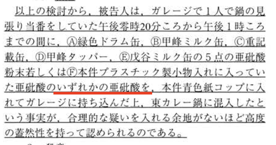| 判決 | いずれかの亜砒酸→青色紙コップ→カレー鍋 |