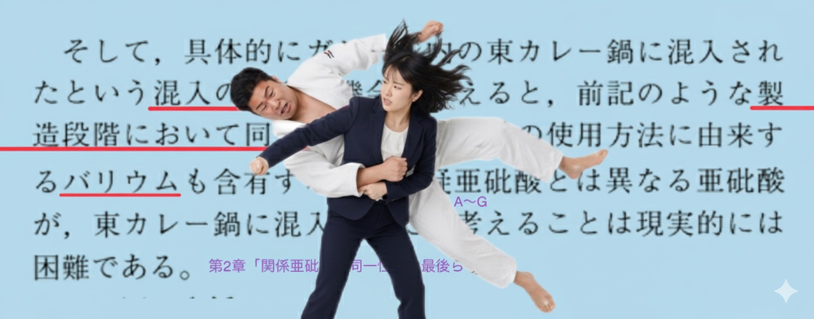 確定一審判決で異同識別のことを扱った「関係亜砒酸の同一性」の最後のとこに、こう書いてあるんや。